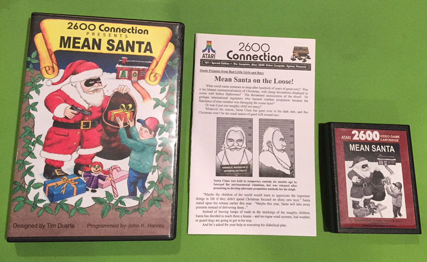 I purchased ‘Mean Santa’ on a whim one day on eBay when I was poking around looking for Atari 2600 stuff. I didn’t see anything else under a certain price that I already didn’t have, and suddenly, I saw this… a picture of a Santa holding a gun, making a kid put his gift back in Santa’s gift bag. I was a little shocked, but also found it hilarious. Something like this surely couldn’t have been allowed back in the day… At any rate, the name ‘2600 Connection’ as displayed on the game manual (as seen above) rang a bell, as the 2600 Connection is/was a long-time Atari fan site.