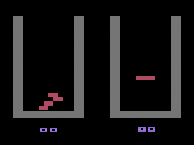 In Z-Blocks, there are many ways it stands out above the rest of the Tetris clones. For starters, players can select the speed and level where they start, and 2 players can play head-to-head in a sort of Z-Blocks battle mode. You can select which blocks you start out with already pre-filled and the position of the blocks, too. Demonix says in their great review, “Graphically, Z-Blocks is quite plain. Each block is readily recognizable as they fall from the top of the screen, but unfortunately all blocks share the same color and there’s no outline around the segments (or squares) of each piece. This really isn’t something that deters from the enjoyment of play, however, and the tradeoff in allowing for two-player simultaneous action is more than worth it.” I completely agree with that statement. Z-Blocks does LOOK quite plain, and that is what first drew me away from the game. Looks aren’t everything, of course, as I’ve learned over the past 2 years as I got more involved with the Atari 2600, and Z-Blocks is a great example of this. Once you get started playing, it can be quite addictive as regular Tetris can be. The one thing I still dislike, though, is that every block is the same color (red) with no variation. I wish this game provided more colors to work with, as that can be a small factor in gameplay enjoyment and variation, as well.