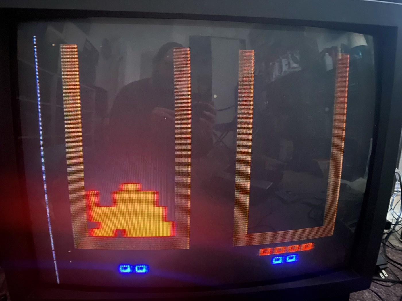 According to AtariAge and user Demonix on AtariHQ, Z-Blocks was self-published by “Alex G,” in an undisclosed year. Tetris clones have been semi-popular, according to Demonix, on the 2600, and Z-Blocks is no exception. Z-Blocks brings ‘multiplayer capabilities’ to the Atari 2600 in this version of Tetris. There was no box with the game when I purchased it on eBay, and it was at a good price, around $10 for the cart, which plays well and is in great shape. My first impression of Z-Blocks was a little lackluster at first, but the more I played it, the more it grew on me.