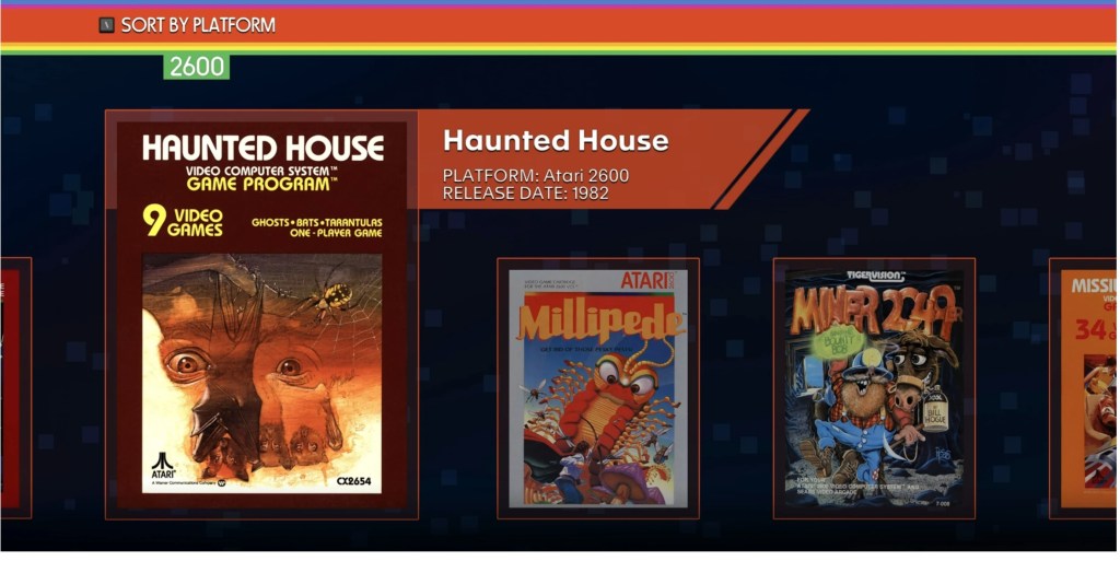 After interviewing Stephen Frost on my Atari-centric YouTube show, “That Atari Show,” a week ago, I got more and more excited for this compilation to come out. I was so excited to talk to the head of production (who previously worked for Sega for a decade and represented the Sonic the Hedgehog franchise) about a game that us Atari fans had been greatly looking forward to. Sure, we were skeptical, but I wasn’t ready for what I actually got. Mr. Frost described the game as “like walking through a museum where you can go wherever you want,” and you aren’t confined to walking through in a single-file line. Instead, you were allowed to go look at whatever you wanted or let your curiosity be the guide. “You can jump right in, and it’s fast,” Mr. Frost said. Since when has this ever been the case with any Atari compilation? While this sounded spectacular to me, I definitely wasn’t prepared for what I saw when I popped the game into my Nintendo Switch last Friday. I rushed home after work, through menacing Friday afternoon traffic, and lo and behold – there it was! I opened the shining gold Steelbook edition I’d preordered and popped the game in. After a 5 minute game update on my Switch, when the loading screen popped up and I glanced at the menus, my eyes welled up a little during a launch day video I was in the middle of recording. I blamed it on me tripping to go grab a soda before starting the game. The only thought I had then was: …is this for real?