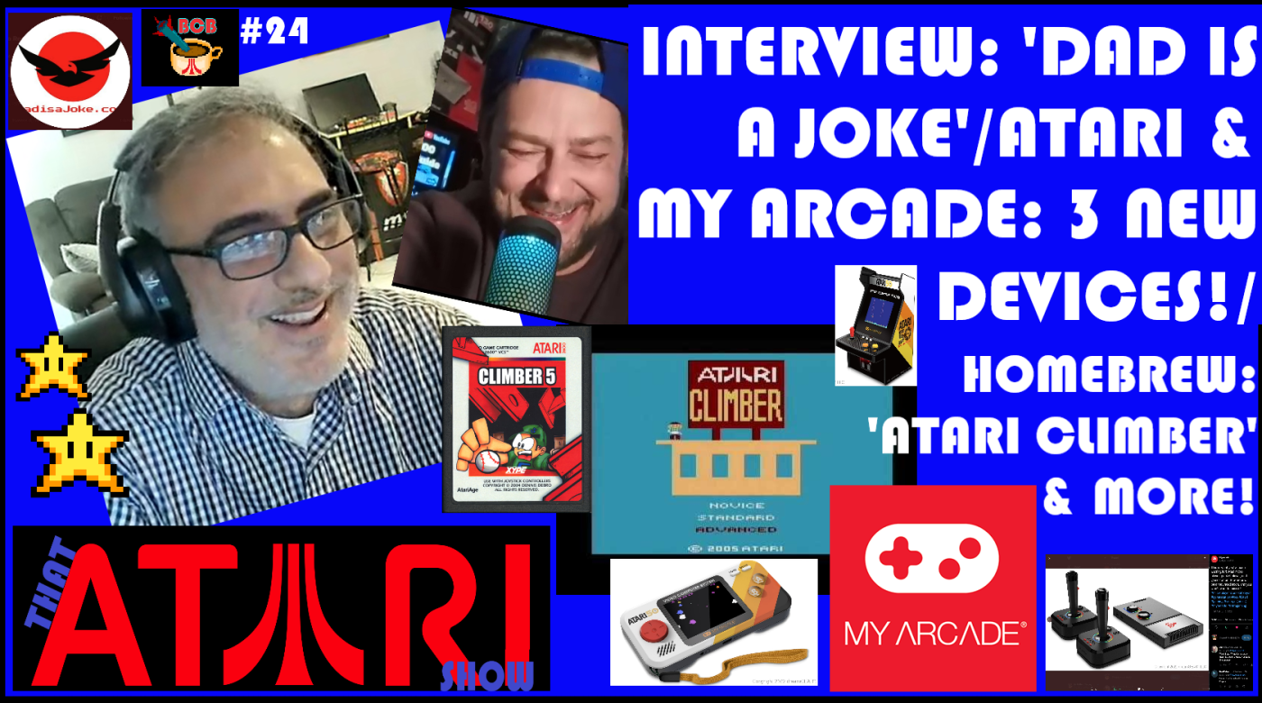 On this episode of That Atari Show, “Dad Is A Joke” (Atari blogger & content creator), stops by to chat his favorite Atari VCS games, click-bait stories, content creation & much more!) Plus: My Arcade & Atari News & a Homebrew game, “Atari Climber/Climber 5,’ for the Atari 2600. Join us for Atari goodness each week. What do you think about the My Arcade & Atari products? Stay tuned to this channel for the latest!
