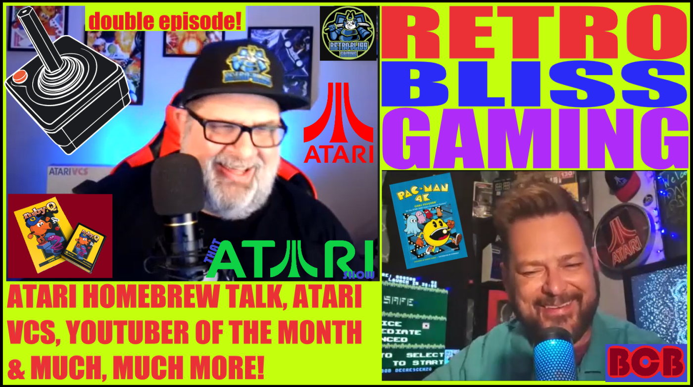On this DOUBLE DOSE of #ThatAtariShow, @RetroBlissGaming joins us for a LIVELY, FUN convo about #Atari being our first love & Atari #Homebrew #Games, most of which are no longer for sale in the #AtariAge store (as of this recording.) It’s a great double episode you won’t wanna miss! Atari homebrew talk out the proverbial wazoo! 🙂 With a great friend, Retro Bliss! These homebrew games include: #hero2 , #pacman4k, #galagon, #rubyq, #lem, #spacerocks, #mappy , #ladybugarcade, #starfire , #retrogamequest, #scramble, #colony7, #seawolf, #donkeykongarcade, #loderunner , #aardvark, #junofirst, #supercobraarcade, #spacepacMan, #robotwar2684, #conquestofmars & more! Also: RBG just bought an #AtariVCS! We discuss his first #impressions, including #games he bought such as #avianknights, #towerofrubble, #donutdodo, #heroesofloot, & #atarivcsvault2! He also talks about his childhood #gaming experiences & memories. AND: @mikesgaminggala, @MrPoestyle, @lukesawakening69 , #YouTuberoftheMonth & much more!