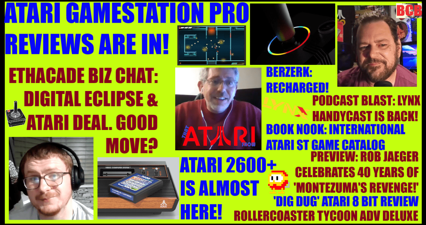 On this episode of #ThatAtariShow, @ethacade joins us to discuss the @DigitalEclipse & @atari deal: good move? Also: A preview of my upcoming interview w/ #RobJaeger, celebrating 40 years of #MontezumasRevenge! (and the #AtariVCS #game release!), #Atari #GamestationPro #Reviews are in! What do u think? #atari2600plus is almost out! I look at some cool content creators in #CreatorSpace, the #AtariLynx #Handycast #Podcast is back!, #BerzerkRecharged is out! #AtariST #Game #Catalog on #BookNook, #DigDug #gamereview for the Atari #8bit Computer & much more!