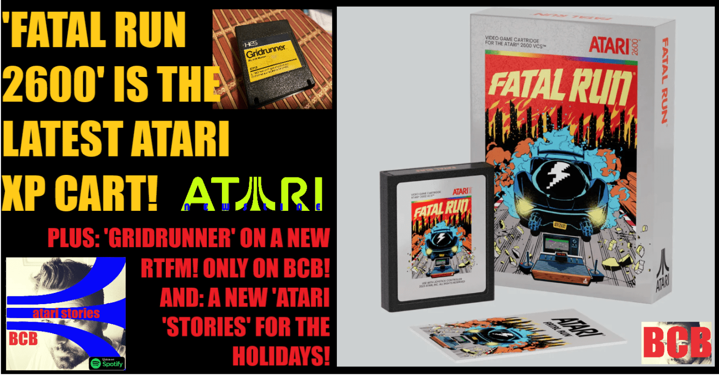 ATARI NEWSLINE. BREAKING NEWS. // On a new #AtariNewsline update, #FatalRun 2600 is the latest #AtariXP cart release up for #preoder on #Atari.com! Interested? (w/ #gameplay footage by the great @Highretrogamelord!) Plus: #Gridrunner by #JeffMinter is the feature of a NEW #RTFM, only here on #BCB! And, finally: a NEW #Holiday episode of #AtariStories will be out today on #Spotify, featuring stories by @TonyLongworth, an #Atari #musician & #Fan! Check it out!