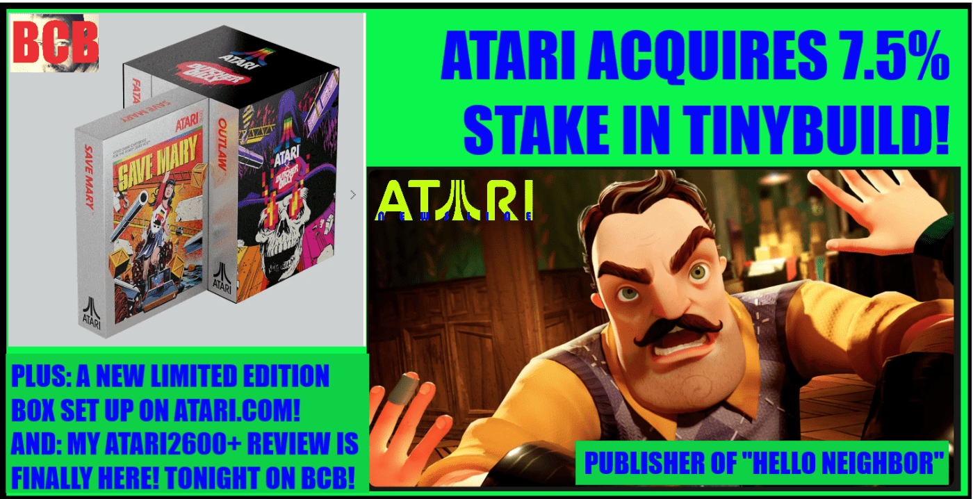 ATARI NEWSLINE. BREAKING NEWS. // On this #AtariNewsline update, #Atari acquires a 7.5% #stake in #TinyBuild, publisher of #HelloNeighbor! Let’s read a news article & discuss. Plus: My #Atari2600Plus #Review is finally here! Tonight on #BCB! I discuss. And: A new #AtariXP #boxset is in town! It’s limited edition! Let’s take a look…