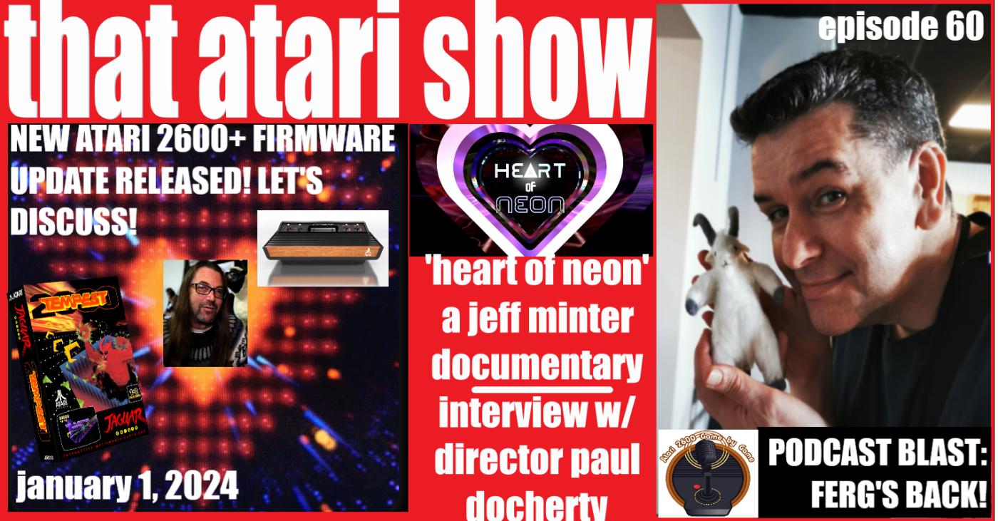 01.01.24 THAT ATARI SHOW 60: Paul Docherty, Director on HEART OF NEON (Jeff Minter Documentary), New 2600+ Firmware, Ferg’s Back!