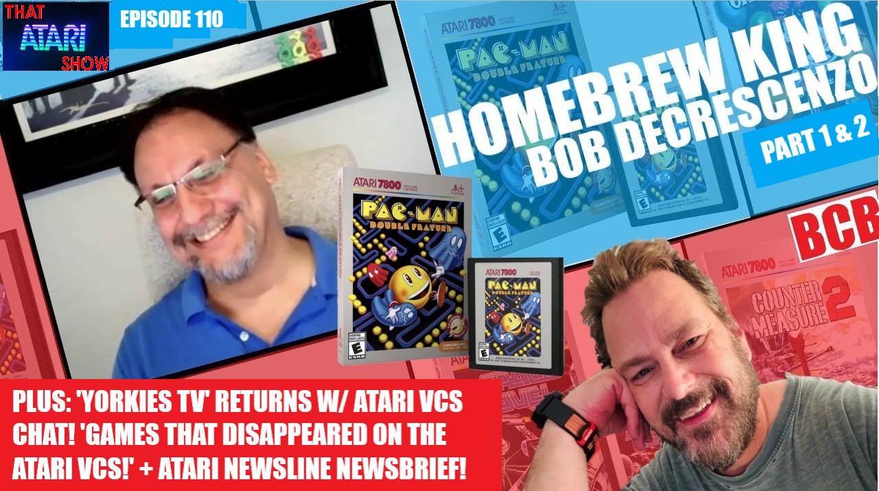 On this double episode of #ThatAtariShow, #homebrew king #bobdecrescenzo joins us to discuss his latest #games for #Atari, including #PacMan #DoubleFeature!, #COuntermeasure2, #SuperCIrcusAtari & more ! Plus, what’s coming next? I also show segments of my special, #Ristretto #6 – #PacMan #DoubleFeature #SpecialEdition! (the #HiddenMenu edition!) where I find a secret hidden menu in the game! And: @YorkiesTV is back with some #AtariVCS Chat! ‘Games that Disappeared on the #Atari #VCS!’ Also: Live from #BCB‘s #Coffeecade #arcade room! (Premieres 9/8 Mon @ 7p MT! Don’t miss it!)