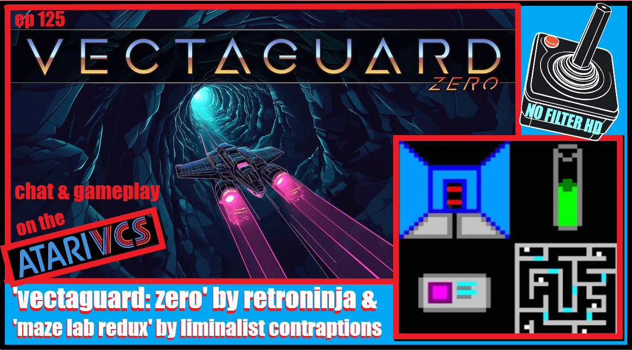 On this episode of #NoFilterHD, my #gamplay & #chat series for #Atari #games on a variety of consoles, I play #VectaguardZero by #RetroNinja (aka #TonyBarnes)! Plus: #MazeLabRedux by #LiminalistContraptions (aka @ObsidianContraption)! Both great friends of mine! So I will try to be partial in my gameplay of these 2 gems! Only on the #AtariVCS! Let’s dig in!