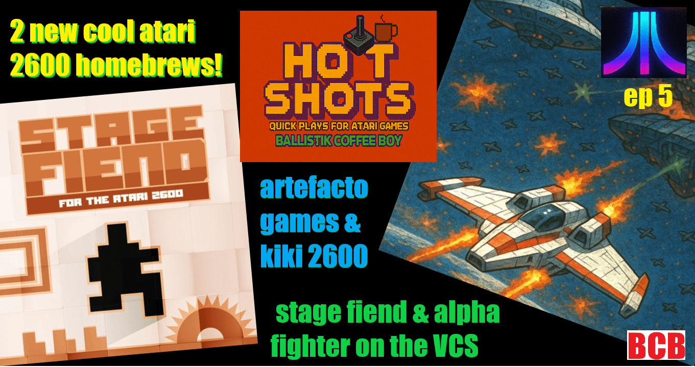 On this 5th installment of #hotshots, my #gameplay series for #Atari#games, I play #Stagefiend by #kiki2600 on the #AtariVCS! A #free#game! And: #AlphaFighter 2600 by #ArtefactoGames! #Krazproductions published these, too, and they’re now avail! Let’s take a look! Future installments will come out when necessary, so stay tuned! BCB