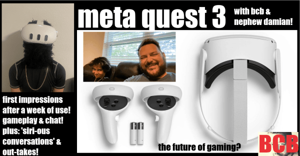 On this episode of #BCB, my nephew Damian and I have spent a week with the #MetaQuest3! We give our first impressions after one week of use. This video includes chat, #gameplay & more! Plus: Stay for the end for "#Siri-ous Conversations!" This is a fun blooper bit that Damian and I included for your... Continue Reading →