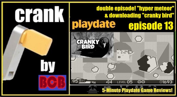 07.16.23 Crank #13: “Hyper Meteor” by Vertex Pop & Downloading “Cranky Bird” (Crank: 5-Minute Playdate Game Reviews)